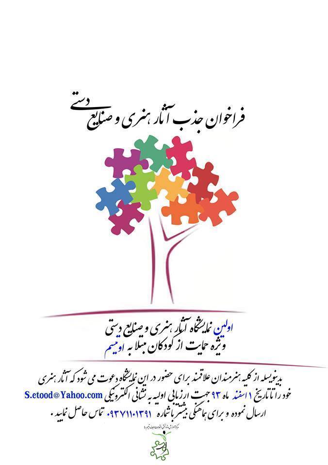 بدینوسیله از کلیه هنرمندان علاقه مند براى حضور در این نمایشگاه دعوت مى شود آثار هنرى خود را تا تاریخ ۱ اسفند ماه ۹۳ جهت ارزیابى اولیه به نشانى الکتریکى [email protected] ارسال نموده و براى هماهنگى بیشتر با شماره ۰۹۳۷۱۱۰۱۳۹۱ تماس حاصل نمایید.