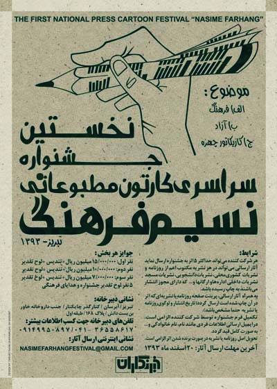 با توجه به اهمیت پرداختن به موضوعات فرهنگی و اقتصادی وتاثیر کاریکاتور مطبوعاتی در فضای رسانه ای، خبرنگاران در نظر دارد در سال اقتصاد و فرهنگ با عزم ملی و مدیریت جهادی اقدام به برگزاری نخستین جشنواره سراسری کاریکاتور مطبوعات تحت عنوان ” نسیم فرهنگ “نماید. لذا از کلیه هنرمندان کارتونیست و کاریکاتوریست کشور برای شرکت در این جشنواره دعوت به عمل می آید.